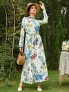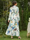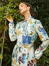 SHEIN Floral & Butterfly Print Self Belted Shirt Dress